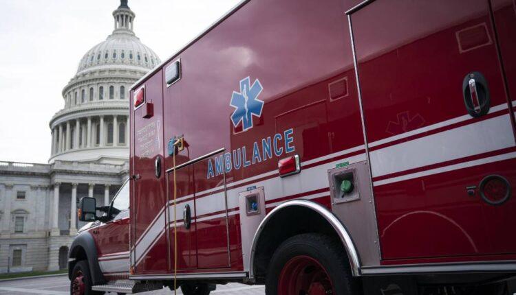 An ambulance sits parked outside of U.S. Capitol in Washington, D.C., on Tuesday, April 21, 2020.Sarah Silbiger | Bloomberg via Getty Images