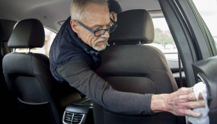 Lyft driver Steven Smith uses a sanitizing wipe to disinfect his vehicle as he waits to get a call from a passenger in San Francisco, Calif. on Thursday, March 19, 2020. Smith and other Lyft drivers have seen a decline in ridership amidst the Bay Area's shelter-in-place in response to the global outbreak of the Coronavirus. (Jessica Christian/The San Francisco Chronicle via Getty Images)San Francisco Chronicle/Hearst Newspapers via Getty Images