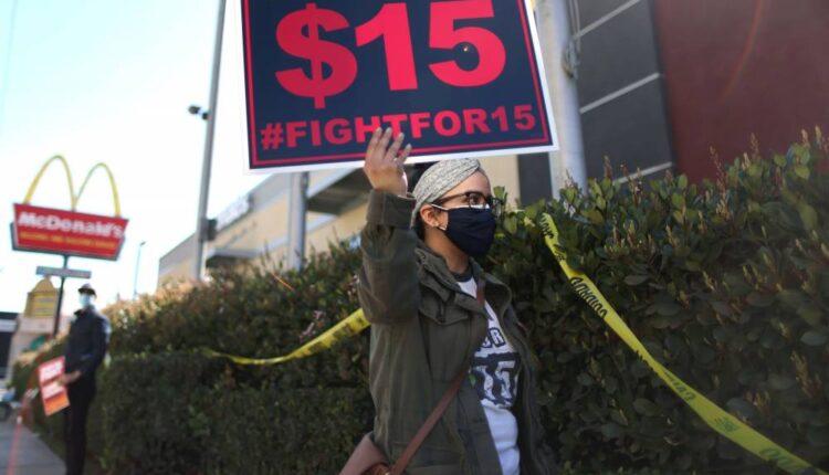 A Feb. 18 rally celebrating the California Labor Commissioner’s order for a McDonald's franchise to rehire and compensate workers who went on strike for coronavirus protections was held on Feb. 18, 2021.Lucy Nicholson | Reuters