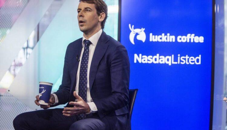 Reinout Schakel, chief financial officer of Luckin Coffee Inc., speaks during a television interview ahead of the company's initial public offering (IPO) at the Nasdaq MarketSite in New York, on Friday, May 17, 2019.Victor J. Blue | Bloomberg | Getty Images
