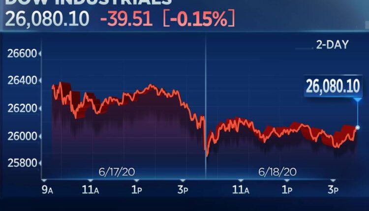 The Dow Jones Industrial Average fell for a second straight day on Thursday as investors weighed the rising number of coronavirus cases in the U.S. and around the world along with disappointing unemployment data.