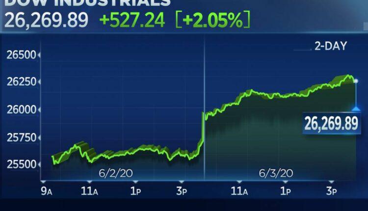 Stock market today: Dow rallies more than 500 points, S&P 500 posts longest winning streak since February