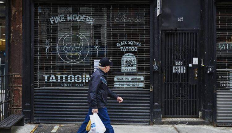 A tattoo parlor is temporarily closed in the Brooklyn Borough of New York, U.S., on Friday, March 20, 2020. Photographer: Gabby Jones/Bloomberg via Getty ImagesBloomberg