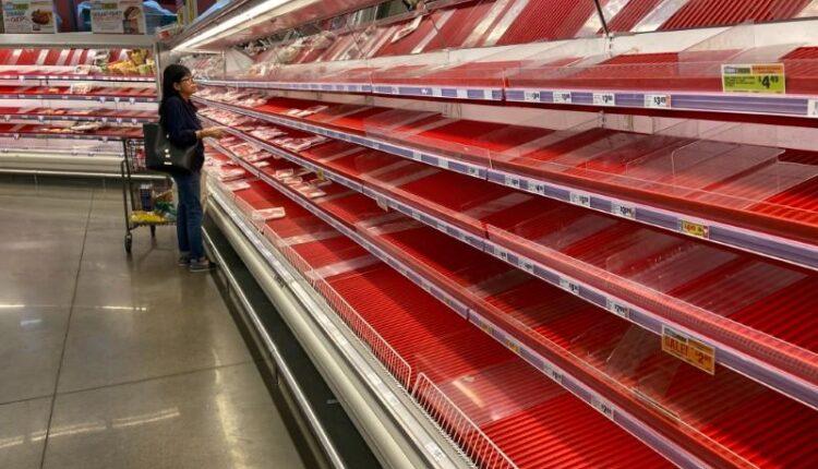 FILE PHOTO: A shopper picks over the few items remaining in the meat section, as people stock up on supplies amid coronavirus fears, at an Austin, Texas, grocery store on March 13, 2020. REUTERS/Brad Brooks/File Photo