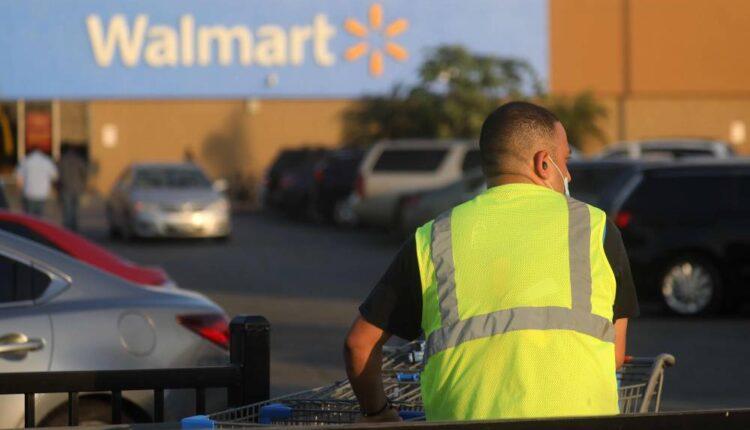 A worker wearing a protective mask arranges shopping carts outside a Walmart store in Duarte, California, U.S., on Thursday, Nov. 12, 2020.David Swanson | Bloomberg | Getty Images