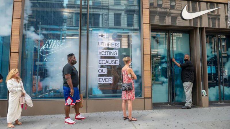 Nike shares spike 8% after blockbuster salesThe athletic wear company reported revenue for its most recent quarter on Tuesday that beat Wall Street’s expectations. One key driver: an 82% rise in digital sales, my CNN Business colleague Clare Duffy reports.”Nike is recovering faster based on accelerating brand momentum and digital growth, as well as our relentless focus on normalizing marketplace supply and demand,” CFO Matt Friend said in a statement.Friend told analysts that demand on the Nike app jumped 150% during the quarter. Big picture: The retail brands with a strong online presence, like Nike and Walmart, are faring far better than those that hadn’t made big investments before the pandemic hit. This could exacerbate the industry divide between the haves and have-nots as bankruptcies pile up.Investor insight: Nike’s stock, which has gained 15% this year, is up nearly 13% in premarket trading and could kick off the day at an all-time record.