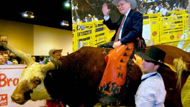 Photos: Warren Buffett: His life in picturesBuffett sits atop a fake bull at the Berkshire Hathaway annual meeting in 2006.Hide Caption 15 of 43