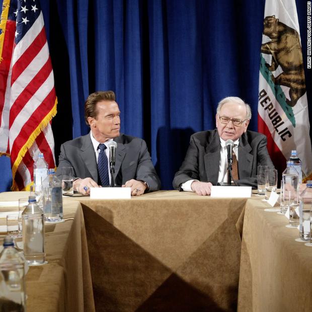 Photos: Warren Buffett: His life in picturesBuffett joins California Gov. Arnold Schwarzenegger during a meeting of Wall Street investors in New York in 2004. Buffett advised Schwarzenegger’s gubernatorial campaign in 2003.Hide Caption 14 of 43