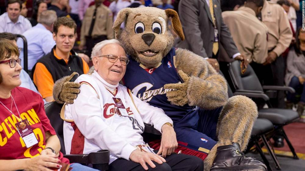 Photos: Warren Buffett: His life in picturesBuffett goofs off with Cleveland Cavaliers mascot Moon Dog prior to an NBA game in 2014.Hide Caption 37 of 43
